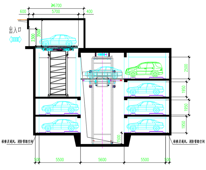 4、   到位后,纵向存取车装置开始动作,将车移到指定位置后停止。